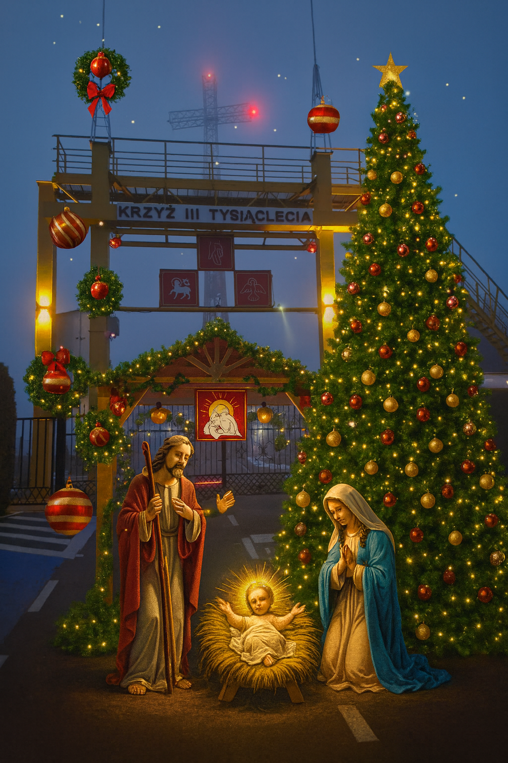 - Część czerwona krzyża 27 m wys. upamiętniająca 27 lat pontyfikatu Papieża Jana Pawła II