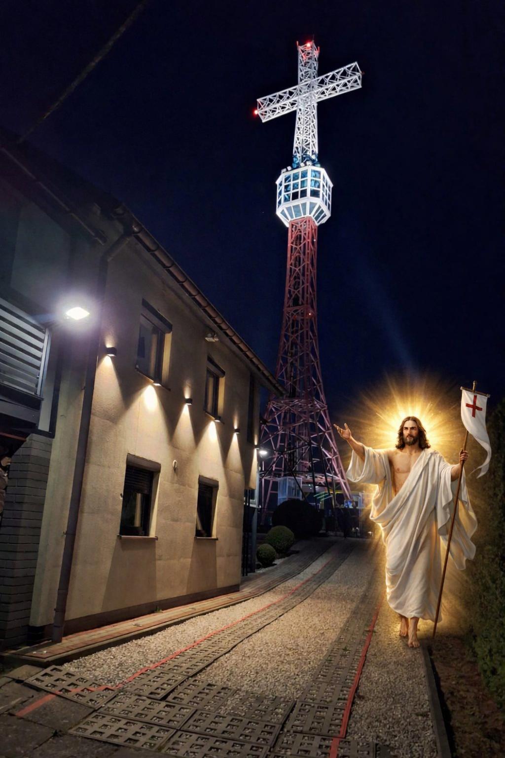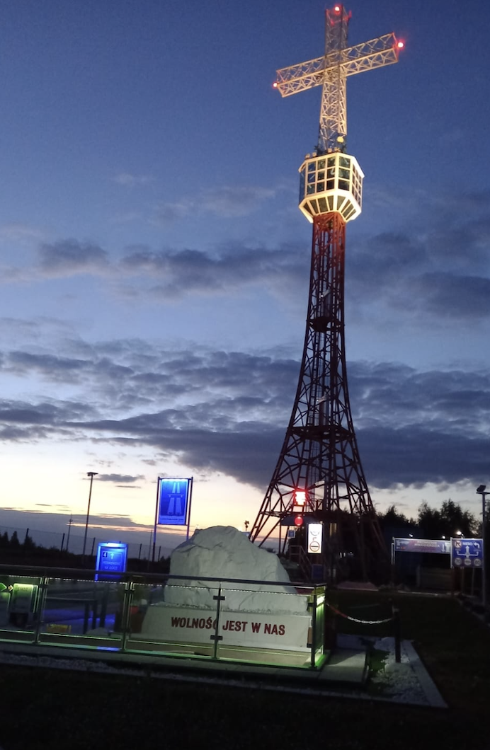 - Część biała krzyża wyrastająca z galerii 18 m wys.