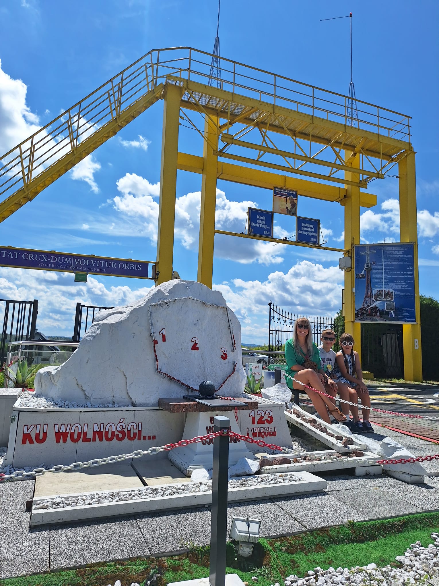 Wakacyjna pogoda nie zawsze sprzyjała odwiedzającym to miejsce. Zdarzały się burze i ulewy. Po jednej z nich udało mi się zrobić zdjęcie tęczy. Biblia mówi nam, że tęcza po potopie była i jest wyrazem BOŻEGO MIŁOSIERDZIA, ma przypominać ludziom o dobroci i łagodności BOGA. To symbol PRZYMIERZA, POKOJU I NADZIEI. ” Oto znak przymierza, który kładę między Mną i wami, i między wszelką istotą żywą, która jest z wami, dla wszystkich przyszłych pokoleń. Łuk mój kładę na obłoku, aby był znakiem między Mną a ziemią.” (Rodz.9,12-13)